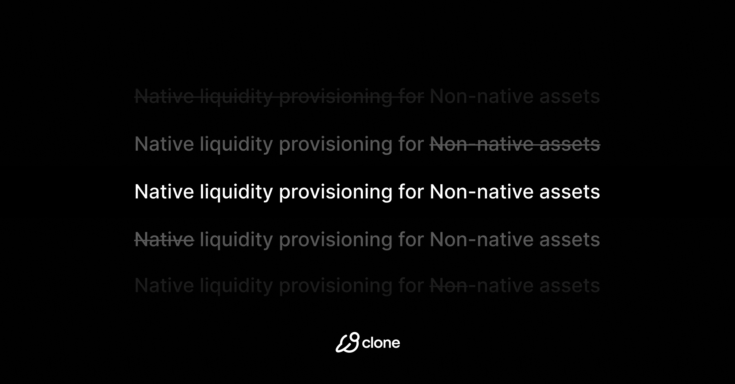 <figure><img src="https://3949094638-files.gitbook.io/~/files/v0/b/gitbook-x-prod.appspot.com/o/spaces%2Fw4WPxGBwVk5pi6YVemxj%2Fuploads%2FA8PrKVxfAw70lVCSzNyj%2FNon-N.png?alt=media&#x26;token=d8354c87-8987-4e4a-8246-e7cbd0112257" alt=""><figcaption><p>Native liquidity provisioning for non-native assets</p></figcaption></figure>
