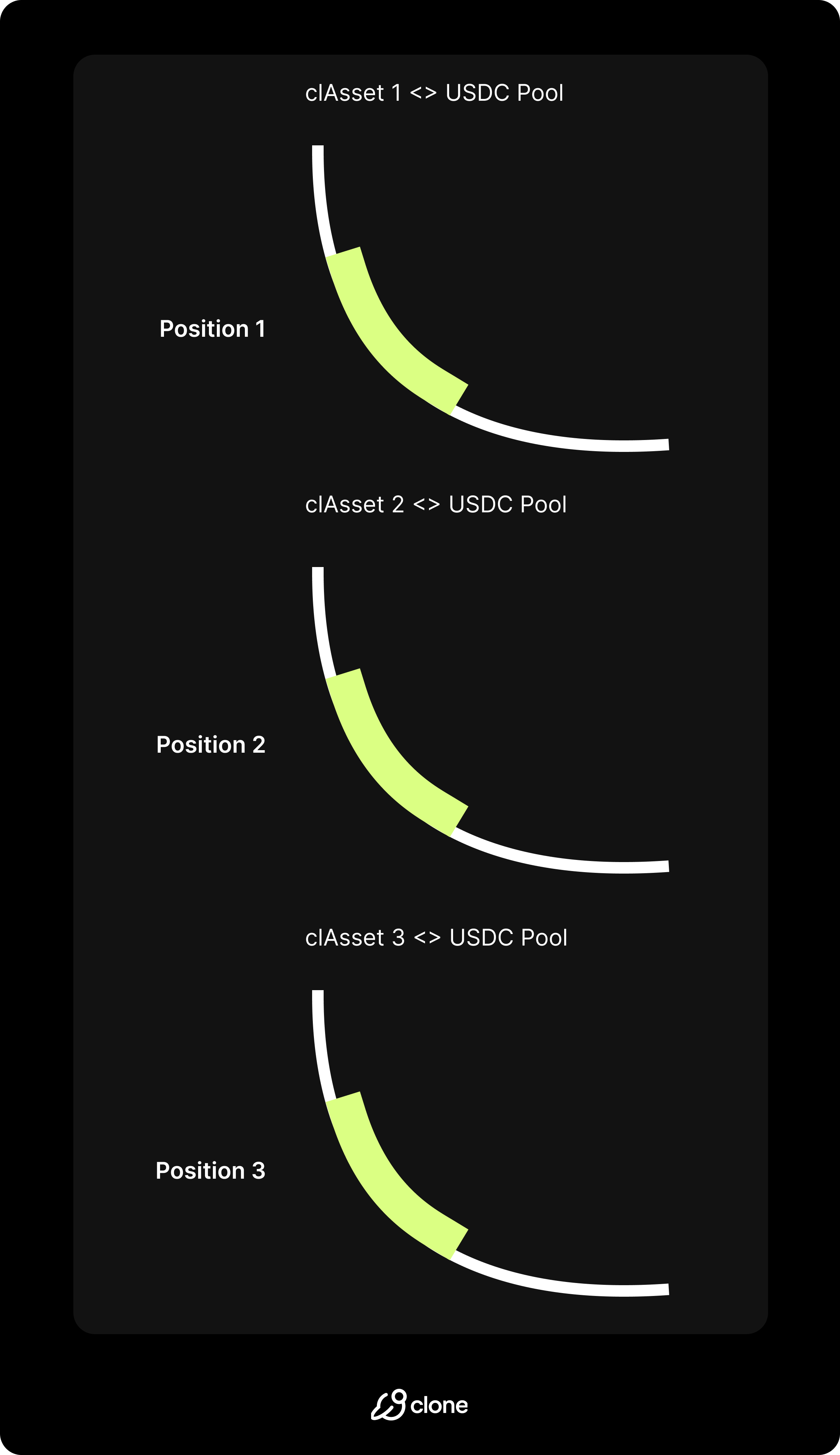 A "Comet" in Clone's Comet Liquidity System is a unique concept inspired by the mechanism of concentrated liquidity Market Makers (CLMM) first introduced by Uniswap V3. These AMMs allow Liquidity Providers (LPs) to concentrate their liquidity within specific price ranges. This means the narrower the range they choose, the higher the yield they receive due to the increased risk of their liquidity becoming inactive with rapid price movements. Concentrated liquidity essentially acts as leveraged liquidity, presenting unique opportunities in synthetic asset pools. A comet can be thought of as a liquidity position within a certain range in our unique comet AMM (cAMM) pools, backed by collateral. When an LP creates a comet, they must deposit some level of collateral and then specify a total amount of collateral and cloned assets (clAssets) they wish to borrow and contribute as liquidity.
